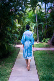 Hand Dyed Silk Kimono Robe in Baby Blue