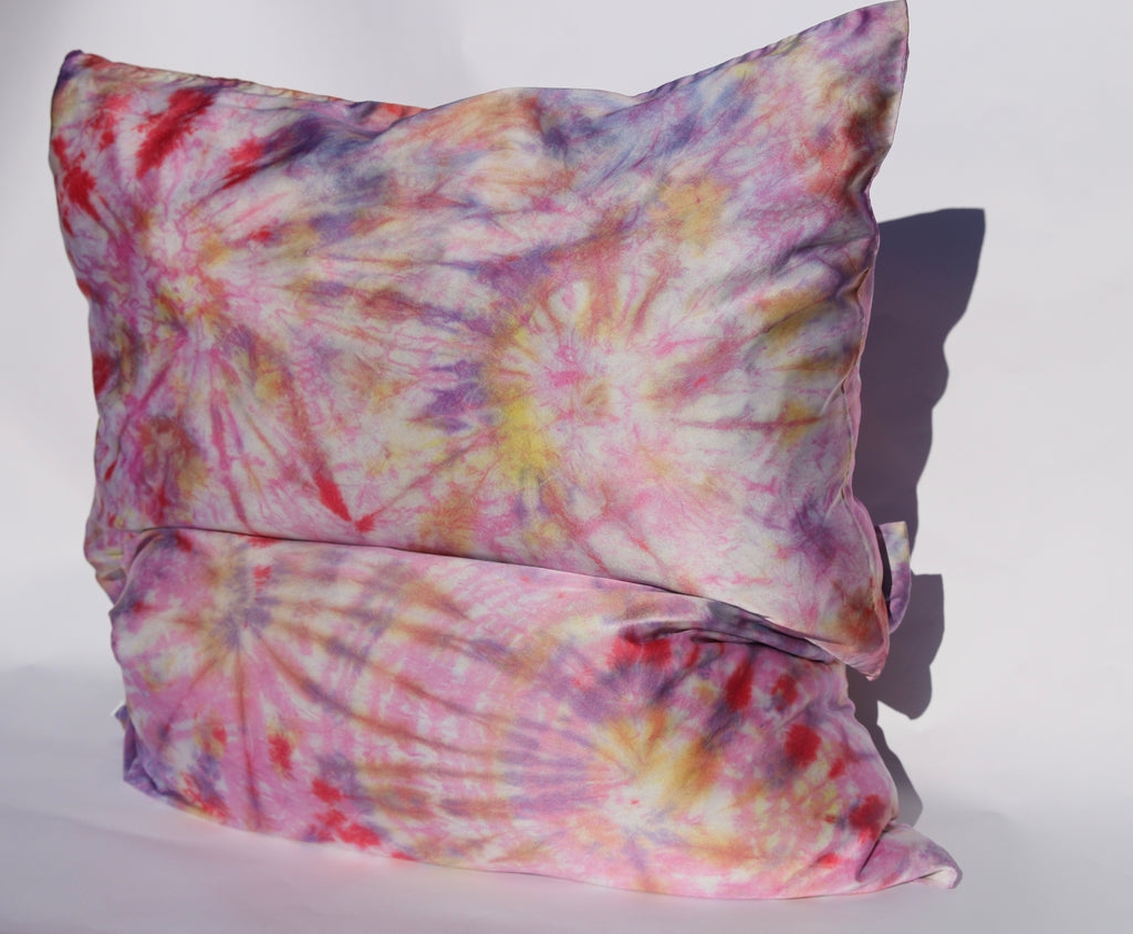 A kaleidoscope of color in vivid hues of pinks and fuchsia, lavender and marigold. While you're dreaming, these silk pillowcases will whisk you away to a colorful and tropical place.