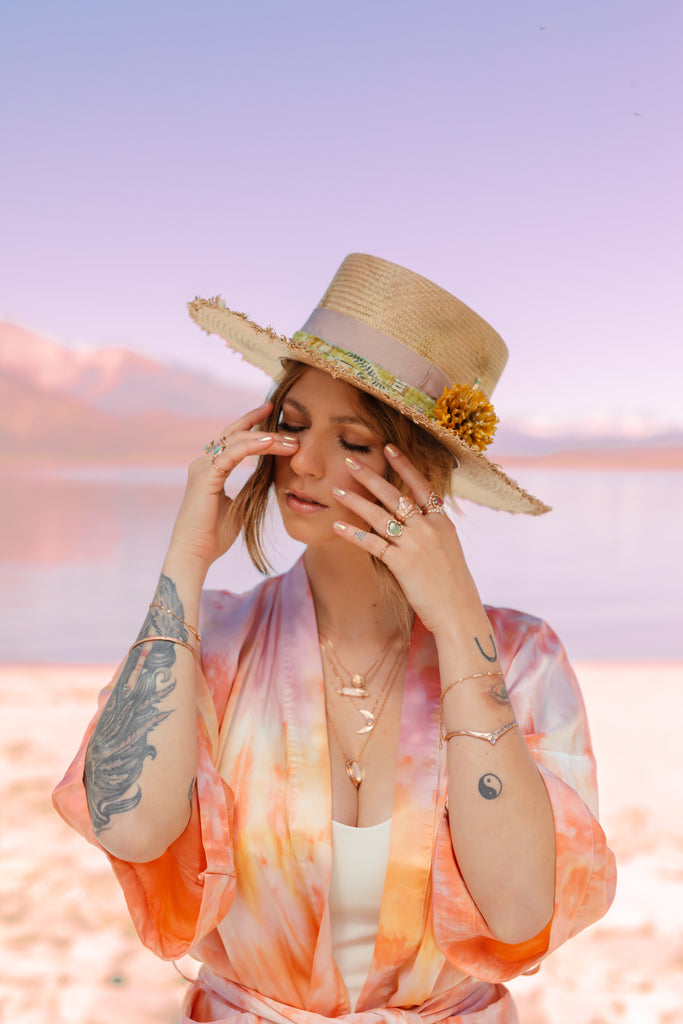 Wrap yourself up in a hand dyed 22 momme mulberry silk kimono robe in Orange Blossom.